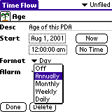 Monthly, Weekly or Daily. It makes setting repeating alarms simple.